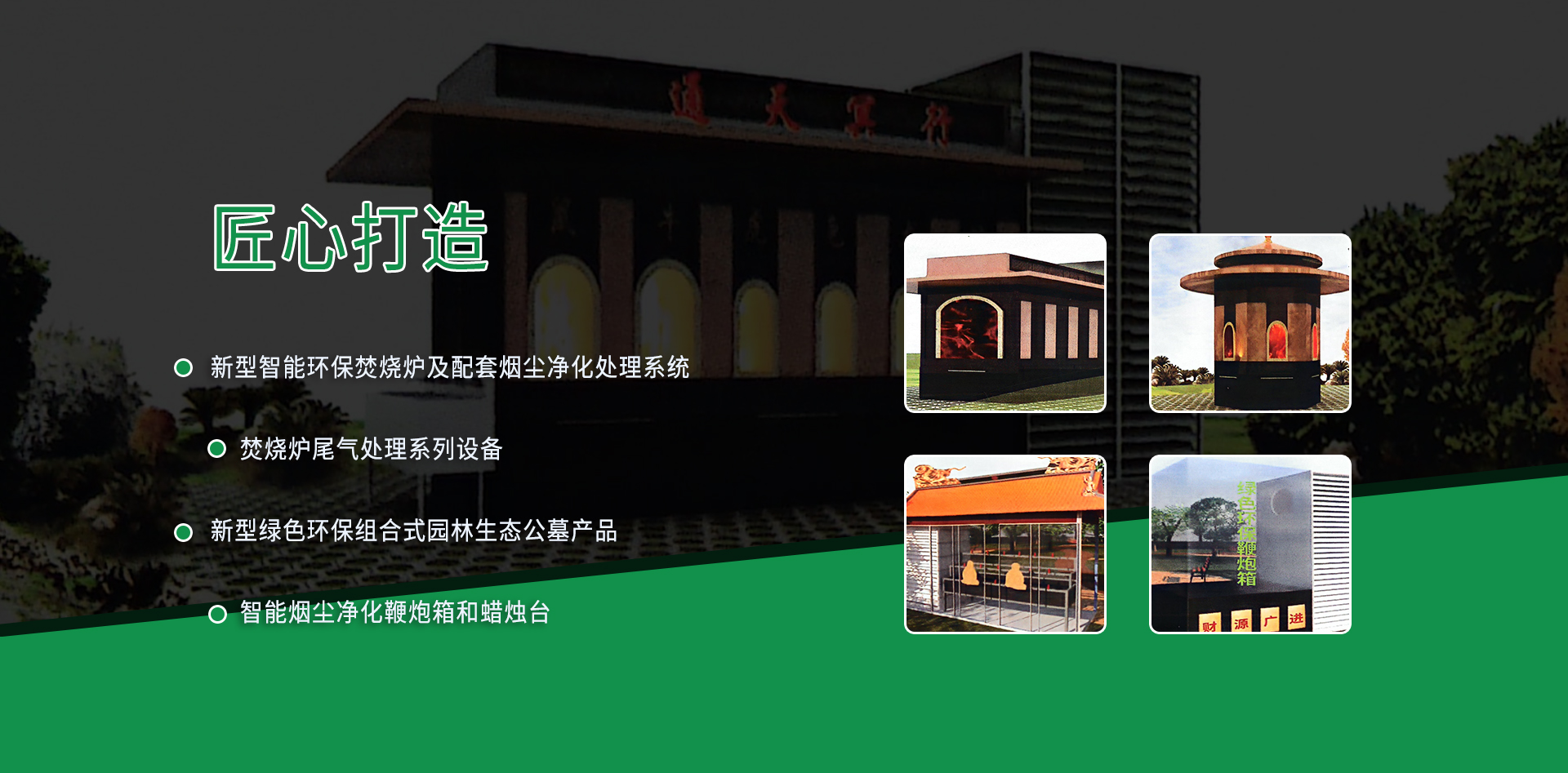 公司目前擁有的核心技術(shù)產(chǎn)品主要有:新型智能環(huán)保焚燒爐及配套煙塵凈化處理系統(tǒng)、焚燒爐尾氣處理系列設(shè)備、新型綠色環(huán)保組合式園林生態(tài)公墓產(chǎn)品、智能煙塵凈化鞭炮箱和蠟燭臺。